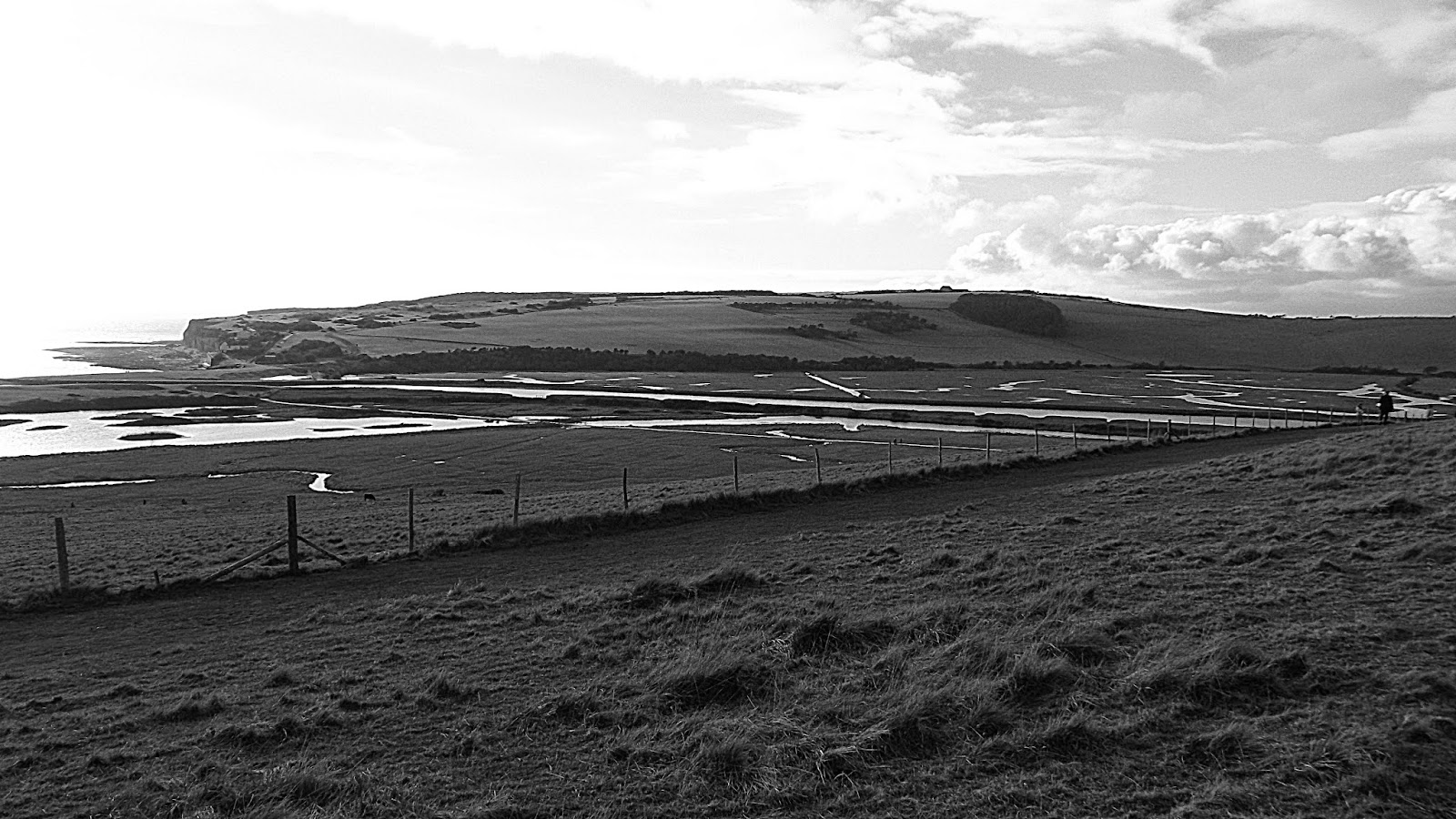Cuckmere Haven lies on the coast at the point where the South Downs meet the sea. Its a dramatic chalk landscape with a characteristic white cliff coastline.